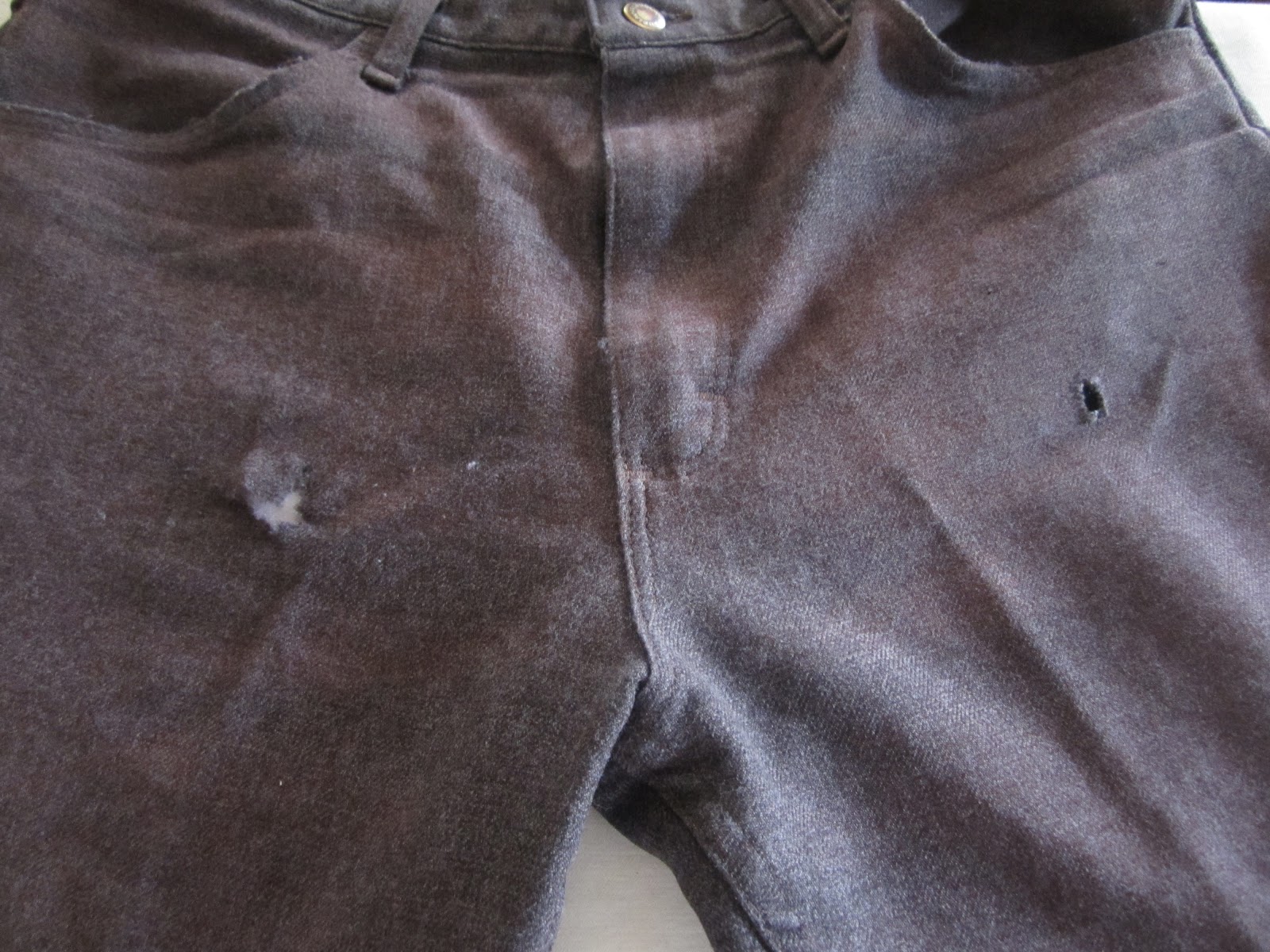 As you can see, small tears have taken over each pant leg. These tears had to be patched up asap. So I grabbed some thread, a ruler, a needle and some black fabric. Yes I said black fabric. That’s all I had, so I put it to good use. I went to town on it and voila!