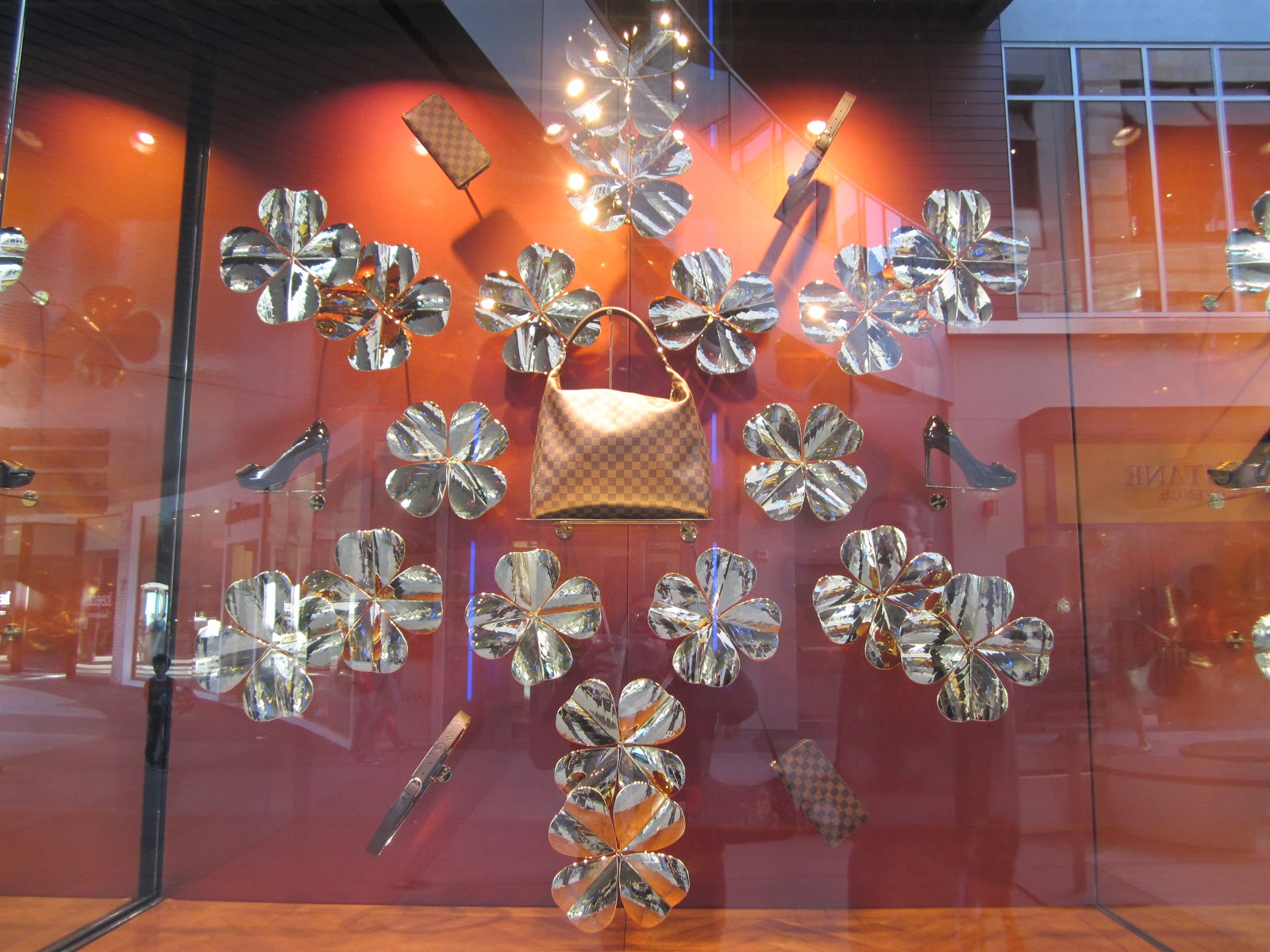 Well hello there! Vuitton sure got ready for the holidays with their snow flake displays. Isn’t it darling??? Indeed it is, I love the colors. Wonderful brown bags and shoes decked across the windows. If you get a chance go out and check out their window displays!